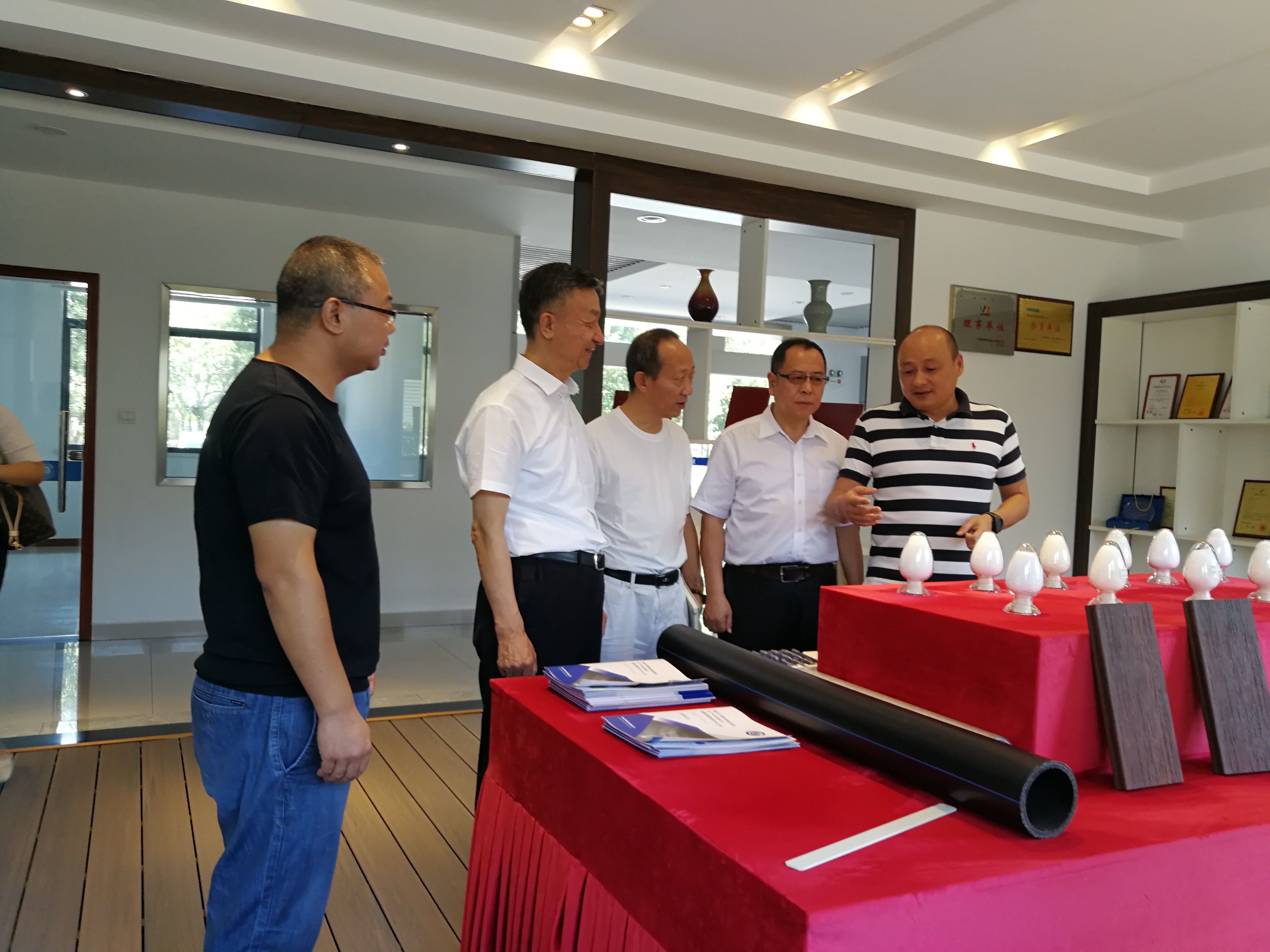 9月17日,中国塑料加工工业协会理事长兼中国轻工业联合会副会长朱文玮、中国塑料加工工业协会副理事长兼秘书长王占杰、安徽省塑料协会会长韦明等一行来到黄山贝诺走访调研,就产品结构、科研成果、企业经营状况、未来发展等方面进行了考察交流。